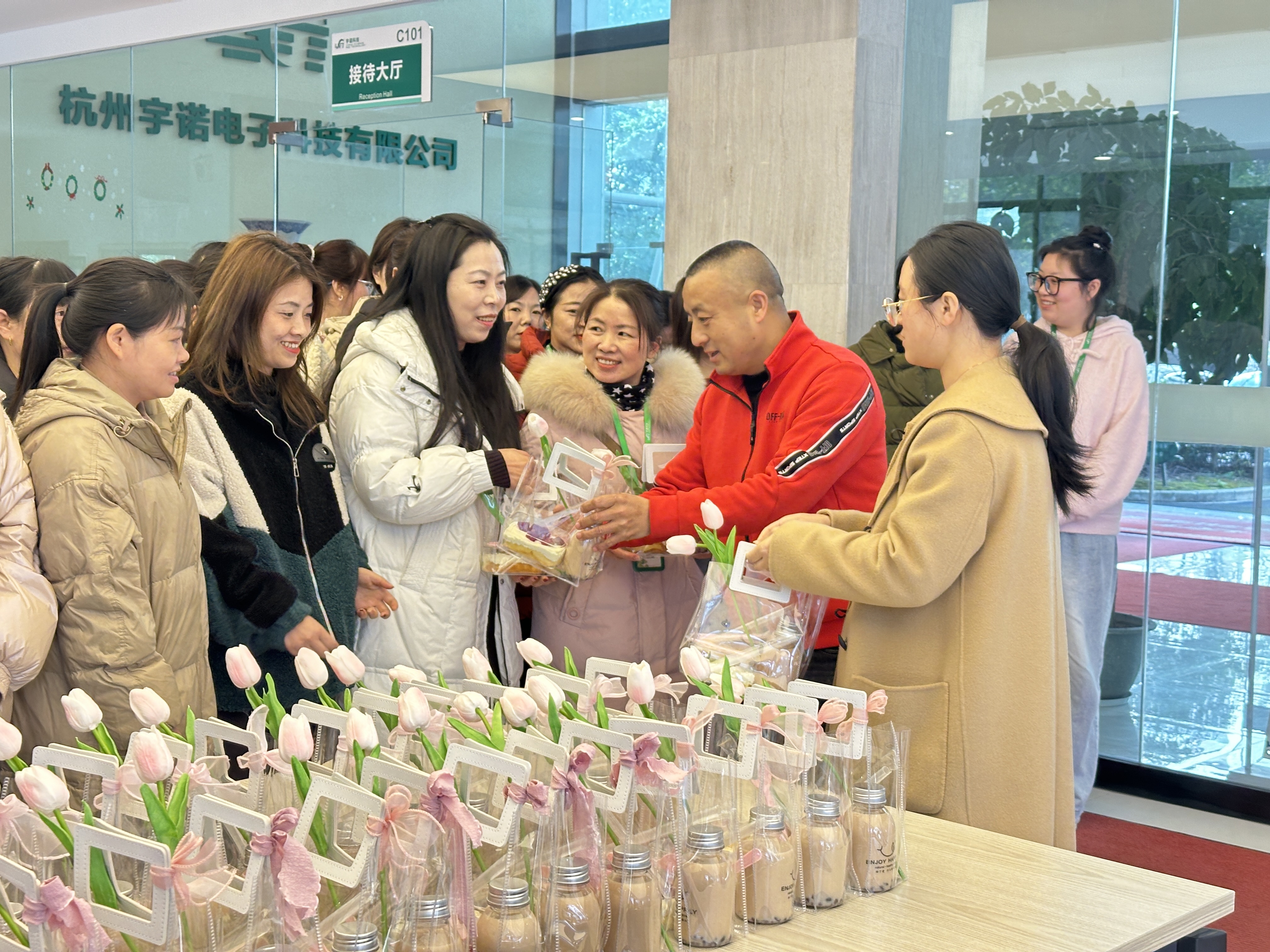 會后,韓董事長親自為每一位女性員工發放了下午茶,郁金香、甜品和奶茶。這可是公司精心為女神們挑選的噢~