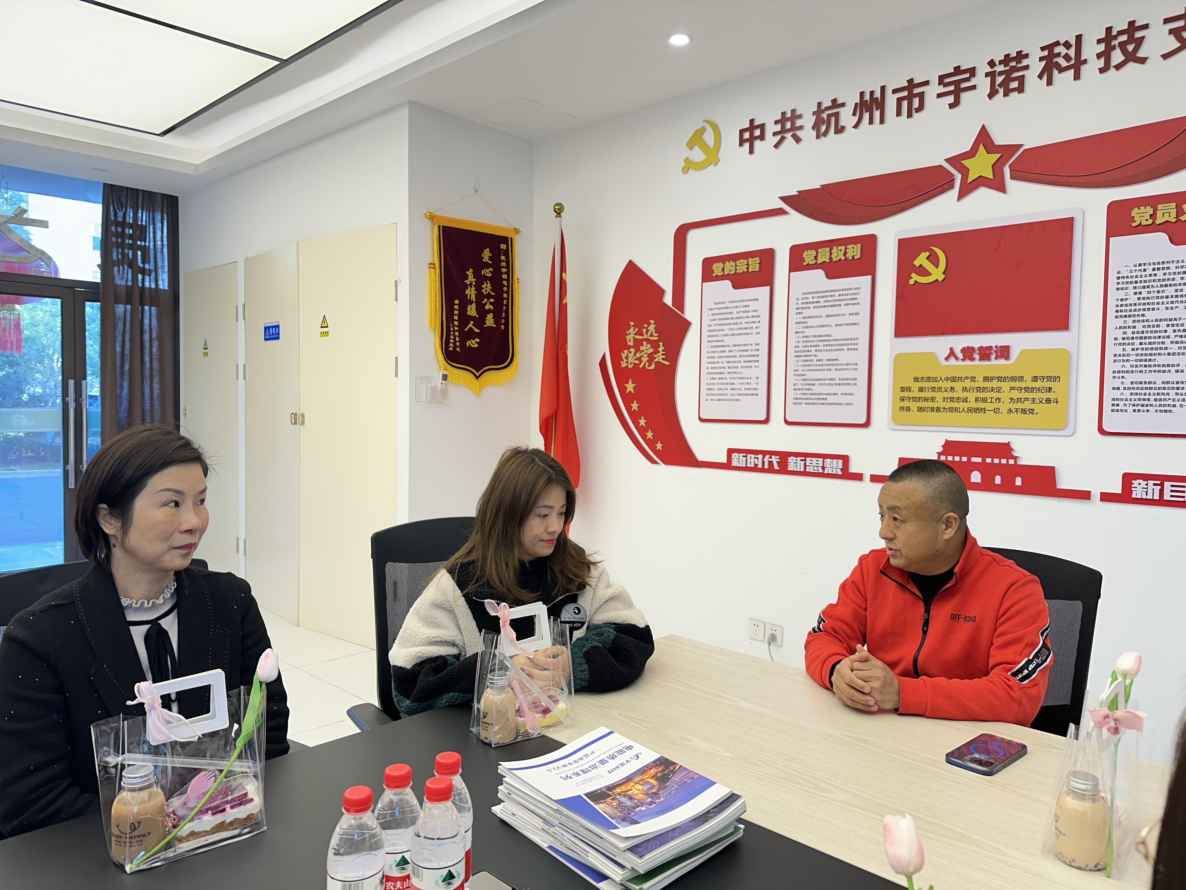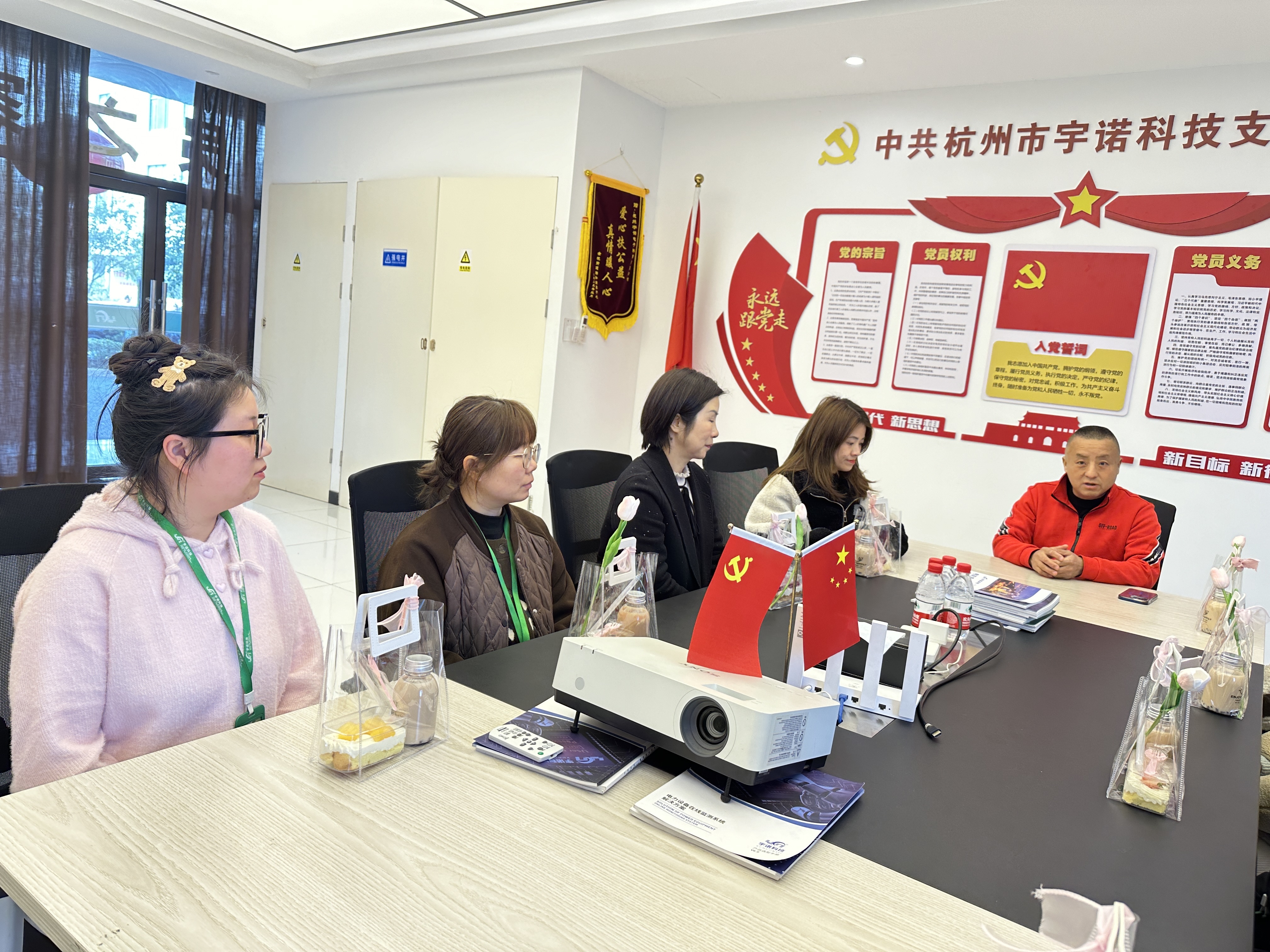 2024年03月08日上午11:00,杭州宇諾黨支部書記韓德昆董事長召開了黨支部會議,黨員施佳,積極分子畢芳芳參與了本次會議。此外,韓董事長代表公司還邀請了女職員代表參與了本次會議。