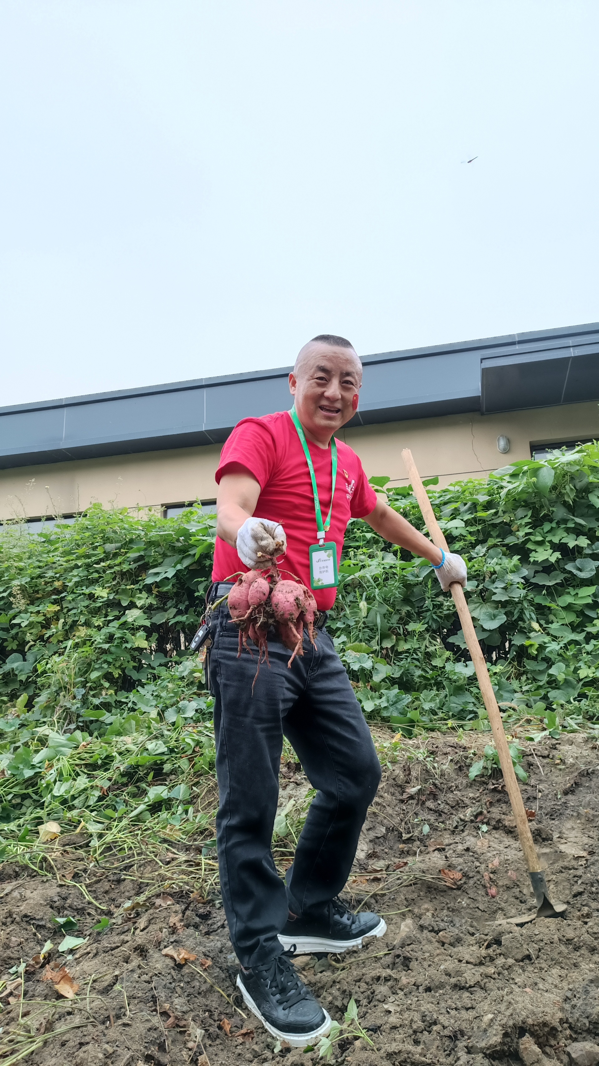 宇諾科技黨員們還對菜地進行翻整,讓凌亂的菜園變得整齊、規整。同時,對已經成熟的蔬菜進行采摘,那一摞摞的紅薯就是戰績。